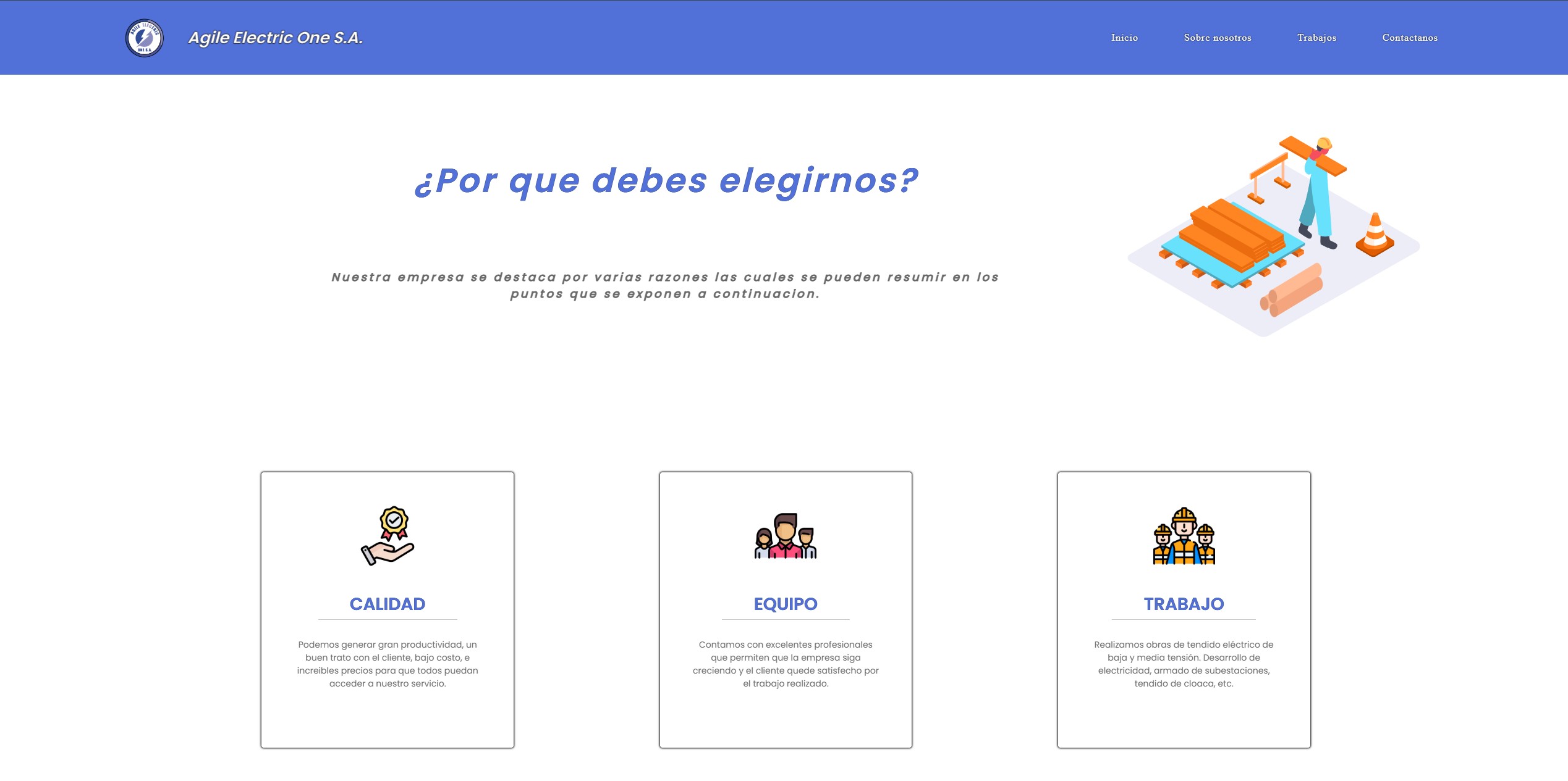 Landingpage realizada para una empresa de infraestructura en donde se exhibe la identidad y experiencia de la misma